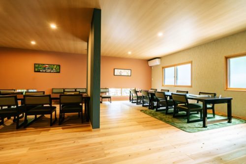リニューアル当時は2階の個室のみでしたが、階段を上がるのが難しいご高齢の方や、大人数での会食の需要もあり、1階に新しく大広間も設けました。風情たっぷりの2階とは打って変わって、和モダンテイストの1階大広間もスタイリッシュで居心地抜群です。