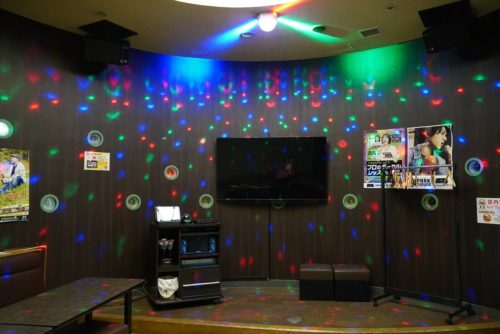 たとえば、Room01はステージ付きの大部屋で最大30人まで収容可能。盛り上がりによってミラーボールが自動で激しく回り、ライブさながらの体験ができます。