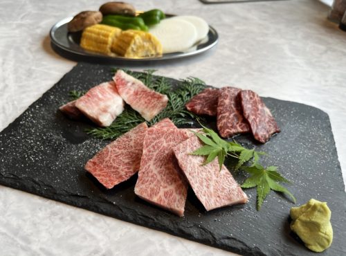 「もぶたん」で味わえるのは、店主が選び抜いた高品質な肉。黒毛和牛は個体識別番号付きで、柔らかさと脂の旨味が絶品です。アメリカ産の牛肉も最上級ランクの「プライム」「チョイス」グレードを扱っており、どれを選んでも納得のおいしさ。「高見牛」など丹波ならではのルートで仕入れた希少なお肉に出会えることもあります。
