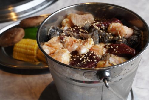 ホルモン好きには、てっちゃん、センマイ、レバーなどがたっぷり詰まった「ミックスバケツホルモン」が大好評。1kg(3,828円)の大盛りが一番人気ですが、250g(1,298円)や500g(1,980円)もあります。