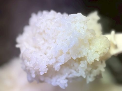 「onigiri and…」のおにぎりに使うお米は、春日町にある芦田さんの実家をはじめ、地元の農家さんのコシヒカリです。「できる限り、生産者の顔が見える安心したお米を使いたいんです」と芦田さん。お米の旨みをしっかり味わえるようにガス釜で炊くのもポイントのひとつ。冷めてもおいしいおにぎりができます。ほら、炊き立てのご飯はつやつやで、見るだけでおいしさが伝わります。