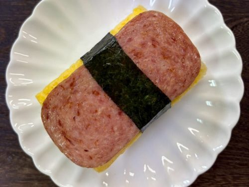 「スパム」は、金・土曜の週末限定メニューです。沖縄のポークソーセージ「スパム」と薄焼きたまごを海苔で帯巻きした一品。「お肉系のものがなかったので考えました。男性の方も満足できるボリューム感あるおにぎりです」。