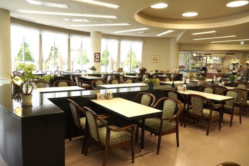 レストランは先払いのチケット制。メニューは、うどんやそばなどの麺類とその定食、牛丼や天丼といった丼物のほか、スペシャルランチなどの食事メニューと、コーヒー、紅茶、パフェ、かき氷などのカフェメニューがあります。