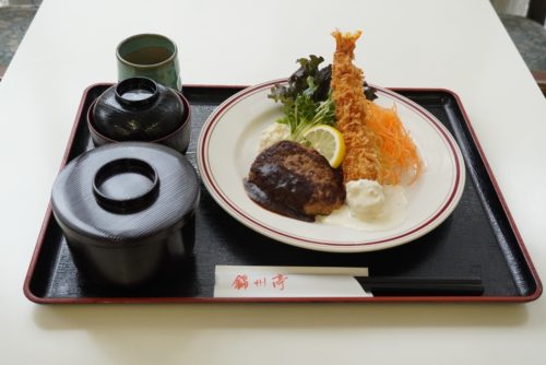 食事メニューで一番人気は、「特大えびとハンバーグ定食」です。ハンバーグとエビフライの組み合わせは洋食メニューのテッパン。子どもから年配の方まで幅広く支持されています。約20㎝の長さのエビフライは、かなりインパクトがあって、大変喜ばれているとか。