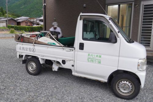 荻野さんの強みは「フットワークの良さ」。「一人でやっているので、朝6時から夜の7時くらいまでならどんな時間でも、見積もりに行けるし作業もできるのが強みですね」と話します。田んぼの畔やお宅の庭、お店の駐車場など、仕事場はいろいろ。長年の勘で、かかる時間と手間と仕事量が、現場を見て瞬時にわかるそう。そこから概算で見積もり額を提示して、納得してもらうと仕事に入ります。思った以上に早く終わった場合は、そこから値引きをするというシステムです。もちろん見積は無料。春から秋にかけての時期に仕事が多いそうです。