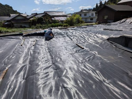 きれいに草を刈って、防草シートを設置した現場