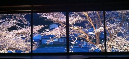 桜の季節には、ライトアップされた艶やかな景色が楽しめます。