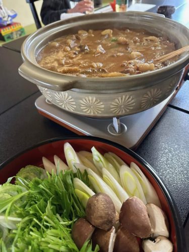 冬の味覚といえば、松葉ガニやセコガニ。そして、ぼたん(猪)料理。「ぼたん鍋」は、赤味噌と白味噌をブレンドしたダシにゴボウや聖護院大根を加えるのが大和流。この大根は、ステーキ風にして提供されることもあるそう。猪肉は煮込むほどにやわらかくなるので、お客さんの到着時間に合わせて美味しい状態で提供されます。