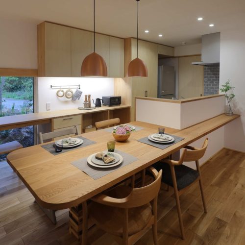 「光と風はタダです(笑)」と、大きな窓から自然光を取り込むことで、明るさや心地よさに加えて、照明に頼らない省エネにもつながります。また、太陽の向きや時間帯によって変化する光と影のバランスを計算し、1日の移ろいと季節を感じられる空間を生み出します。丹波の風土に合った、自然とともに暮らす家づくり。それが由良工務店の原点です。