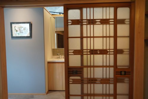 模様入りのすりガラスの引き戸は、昭和の頃に使われていた由良家のものだそうです。幼い日の思い出が、そのまま新しい家の中で輝きを取り戻します。